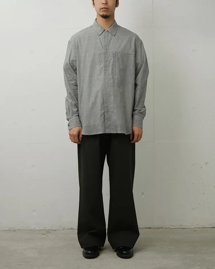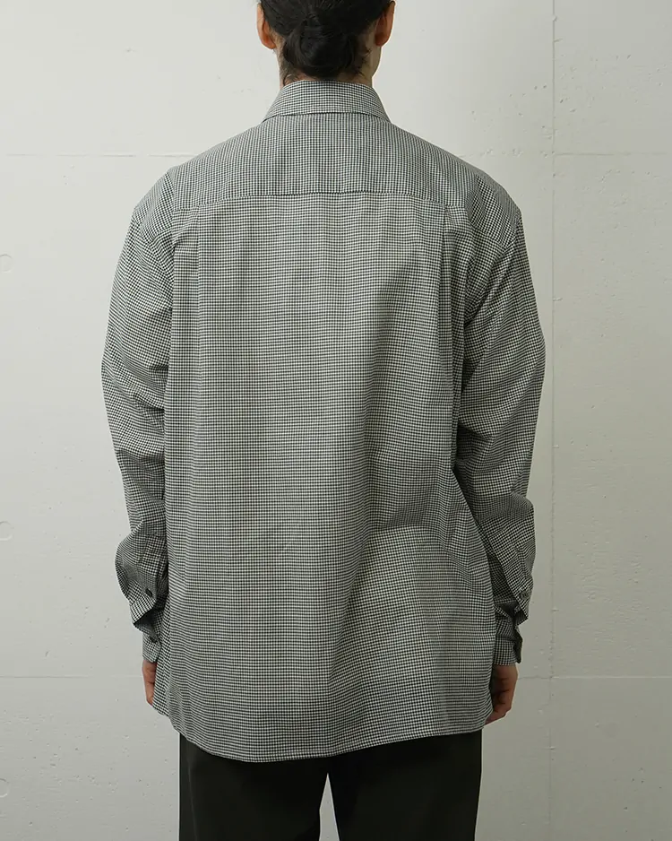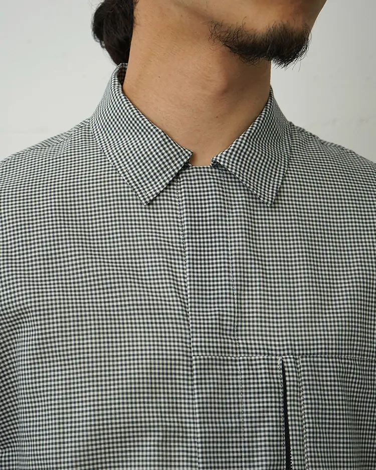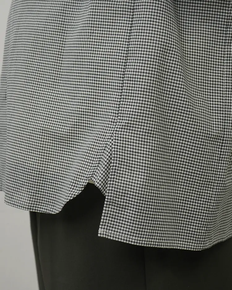 COTTON SILK GINGHAM CHECK ZIP OPEN SHIRT / WHITE×BLACK