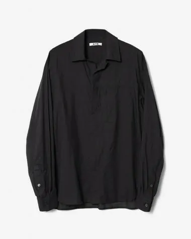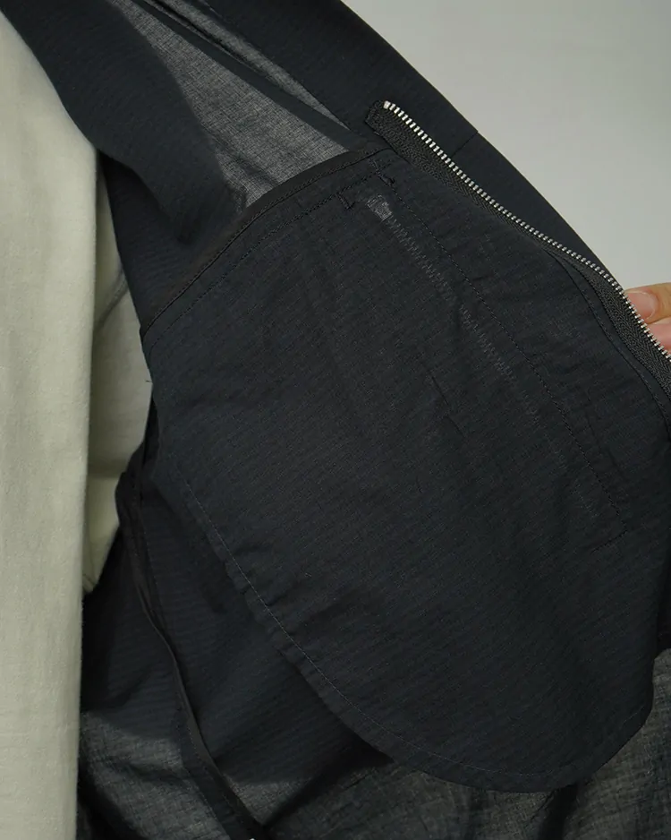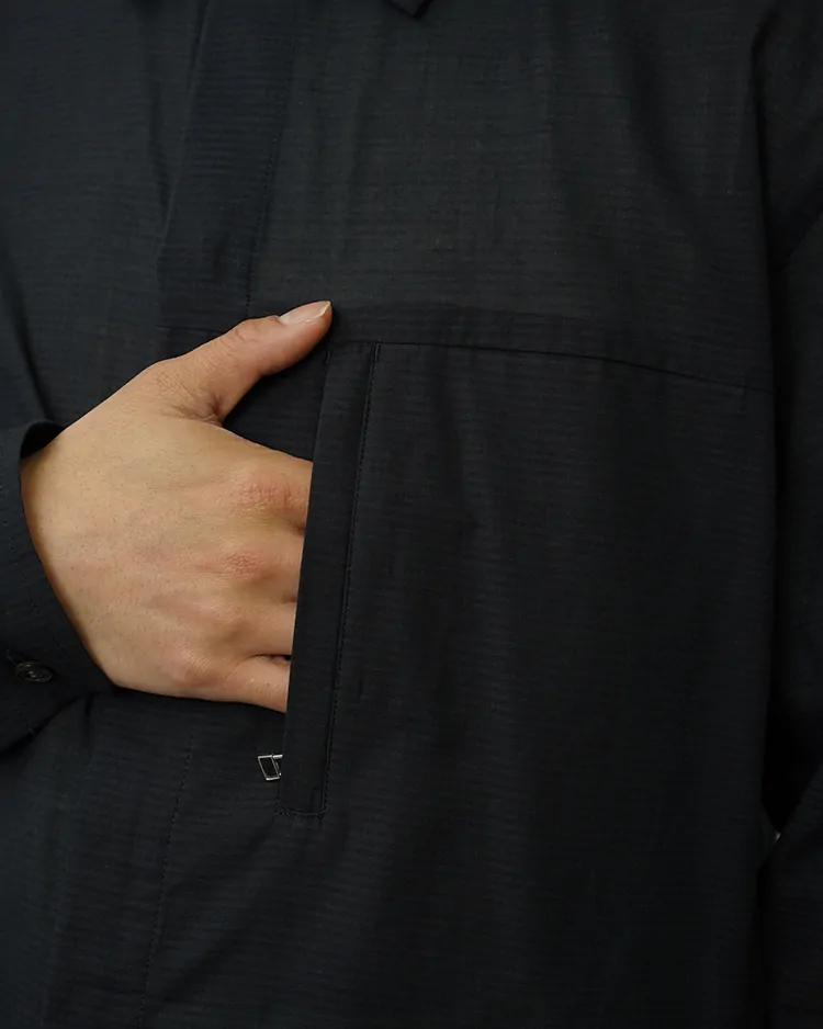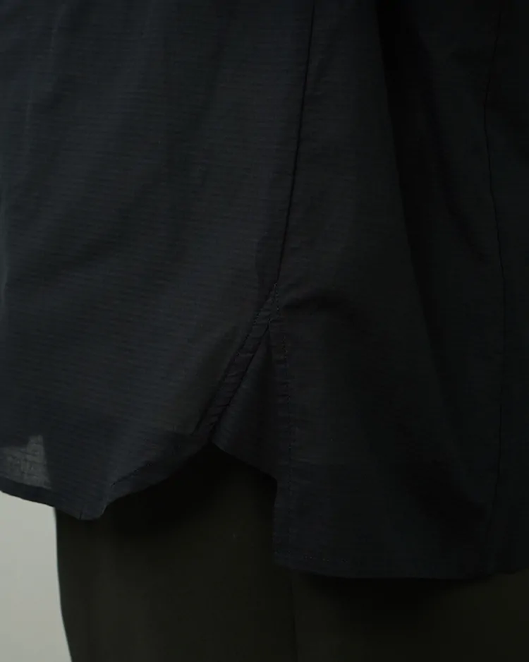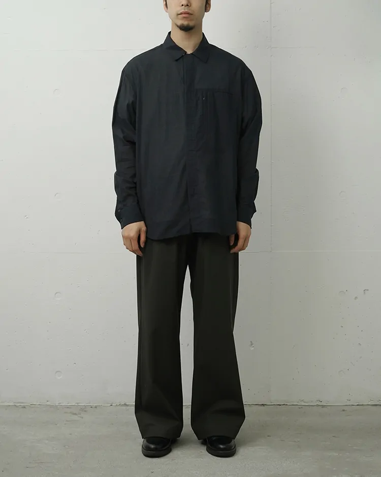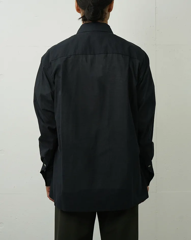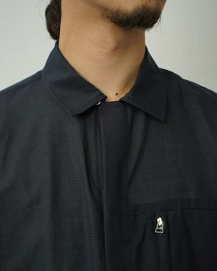COTTON SILK GINGHAM CHECK ZIP OPEN SHIRT / NAVY×BLACK
