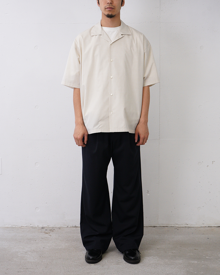 COTTON BROAD OPEN COLLAR S/S SHIRT / PALE BEIGE