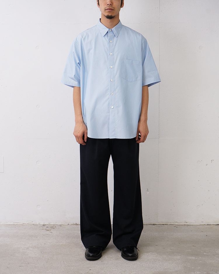 COTTON BROAD STRIPE REGULAR COLLAR S/S SHIRT/ BLUE STRIPE