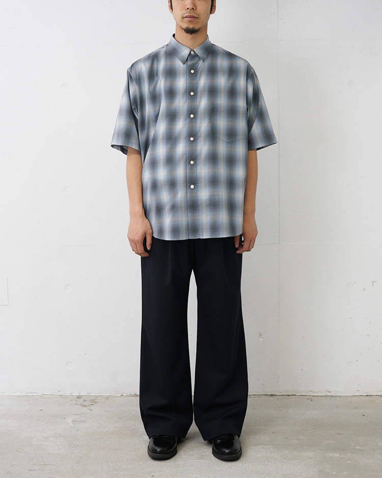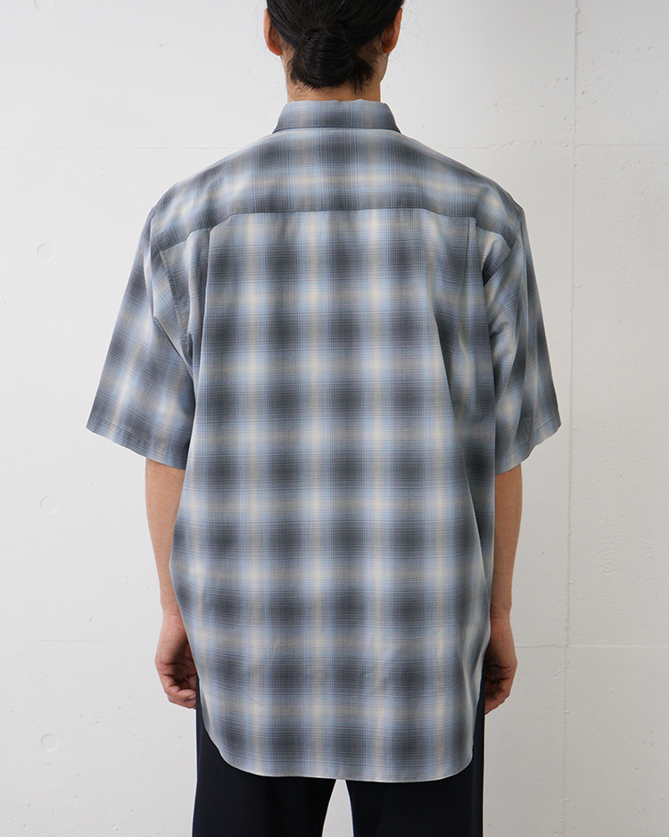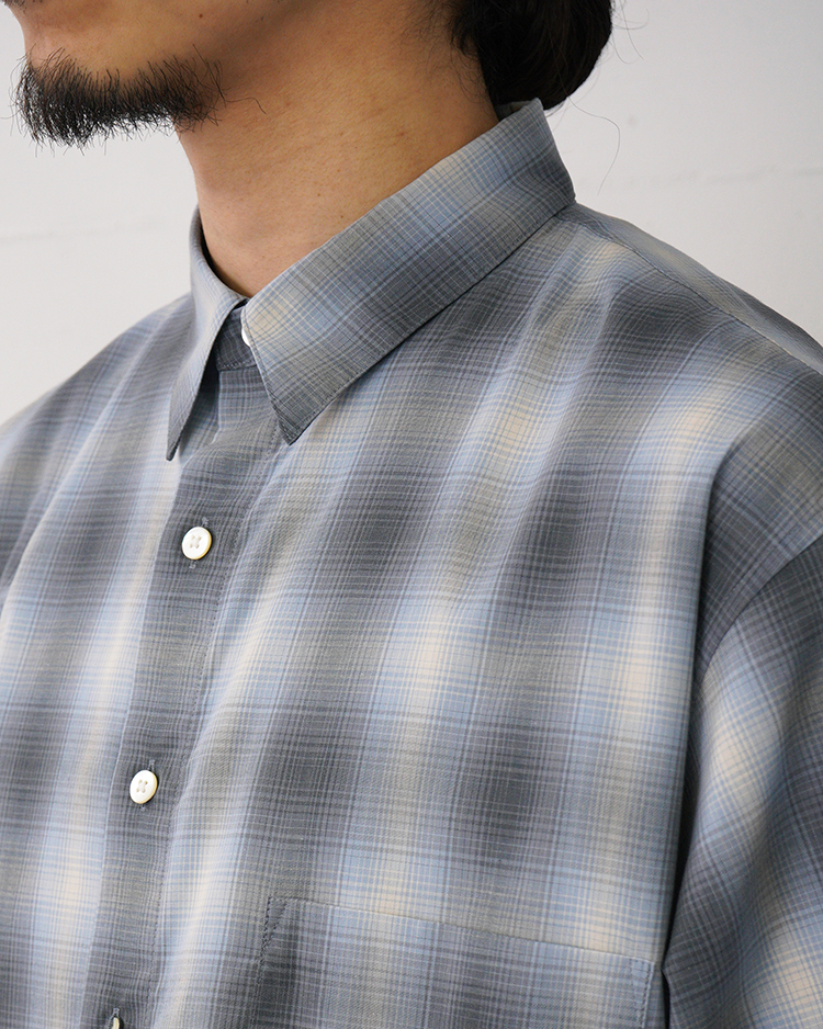 COTTON BROAD CHECK REGULAR COLLAR S/S SHIRT / BLUE CHECK