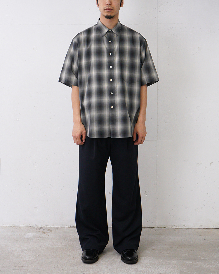 COTTON BROAD CHECK REGULAR COLLAR S/S SHIRT / BLACK CHECK
