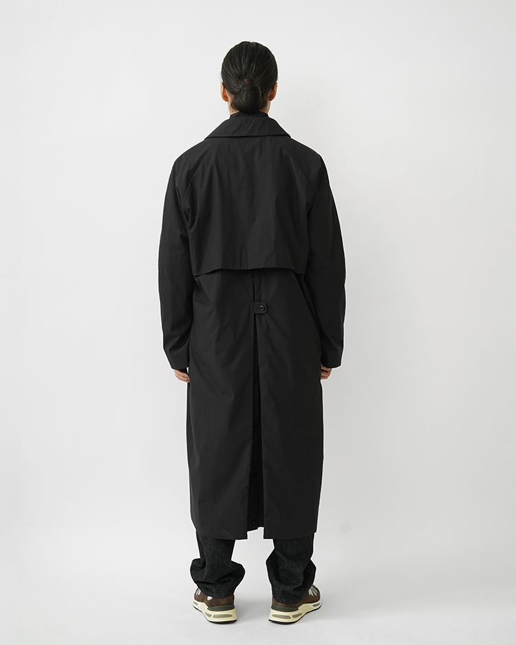 背面に配されたセンターベントがアイコニックな膝下丈のステンカラーコートです。