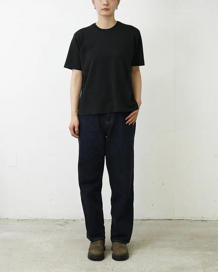 着用を重ねても柔らかな風合いを保ちつつ、目が詰まっているため弾力を持ち型崩れしにくい生地感が特徴です。