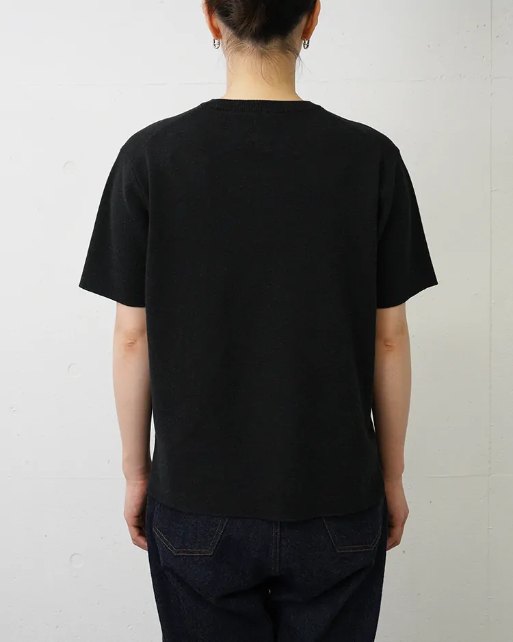 32G SMOOTH KNIT T-SHIRT / MELANGE BLACK