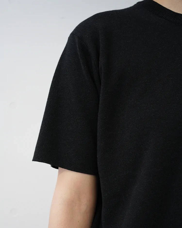 - 32G SMOOTH KNIT T-SHIRT / MELANGE BLACK