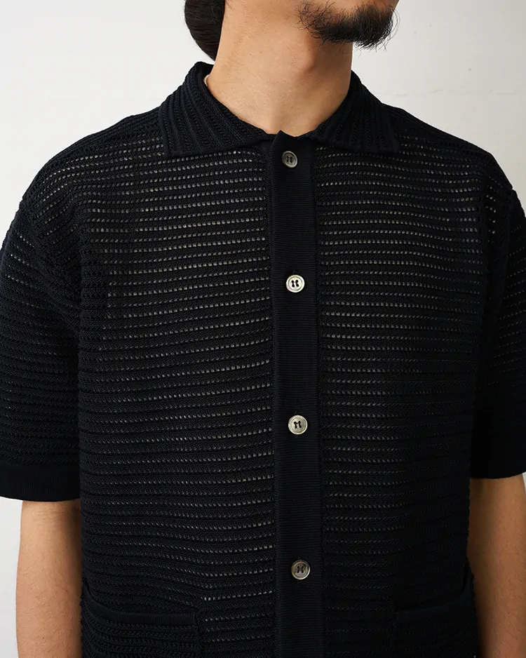 - SUMMER KNIT POLO CARDIGAN SHORT SLEEVE / NAVY