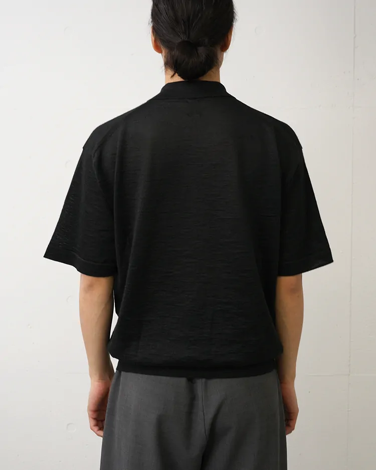 光沢感と清涼感が特徴のロイヤルラミーを極細番手に紡績した繊細な糸を使用。ハイゲージの編機でゆっくりと編み立てており、ラミー特有のハリコシと透け感、凹凸やシボ感が感じられる表情豊かで肌離れの良い商品となっています。