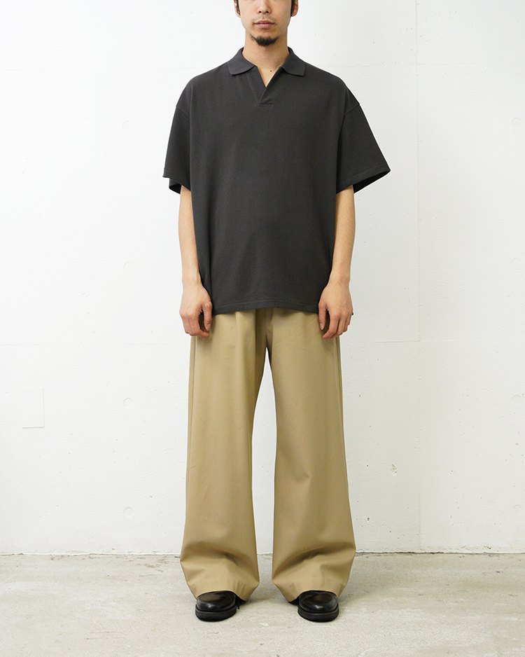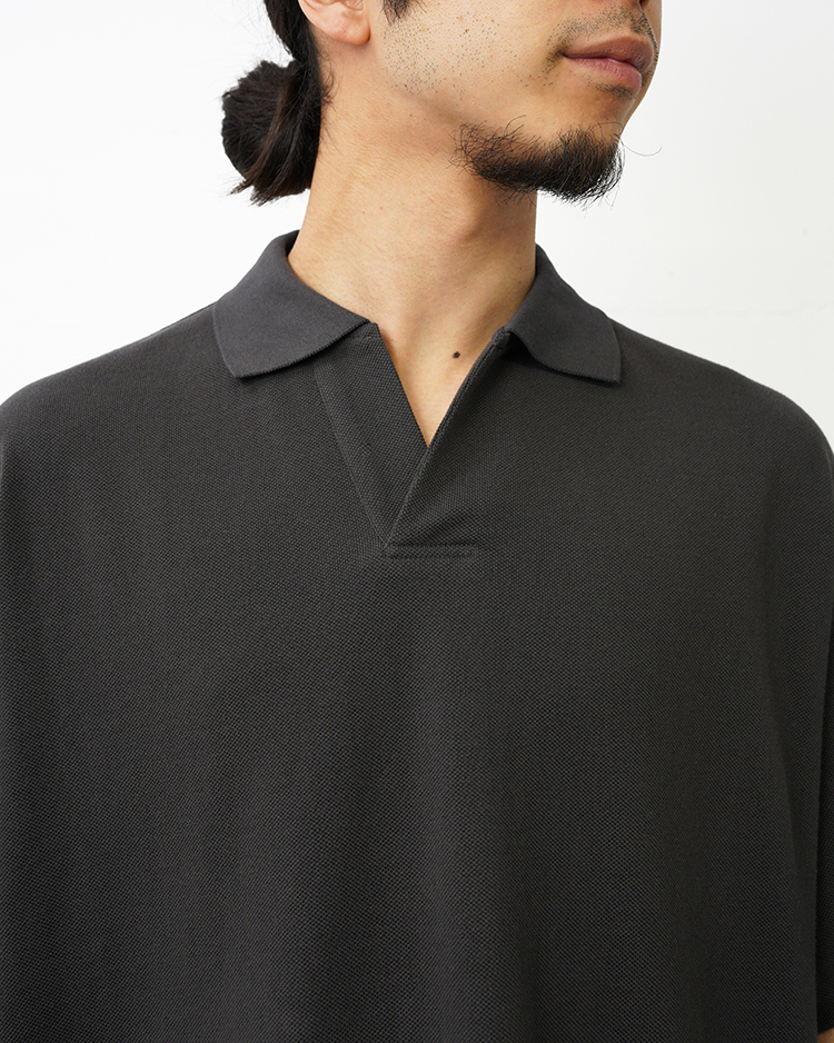 ゆったりとしたシルエットのショートスリーブのスキッパーポロ。Graphpaper定番のパックTシャツと同素材のコットンで編み立てた吊鹿の子は、柔らかでしっかりとしたキックバック性を持ち、膨らみのある鹿の子目が特徴です。