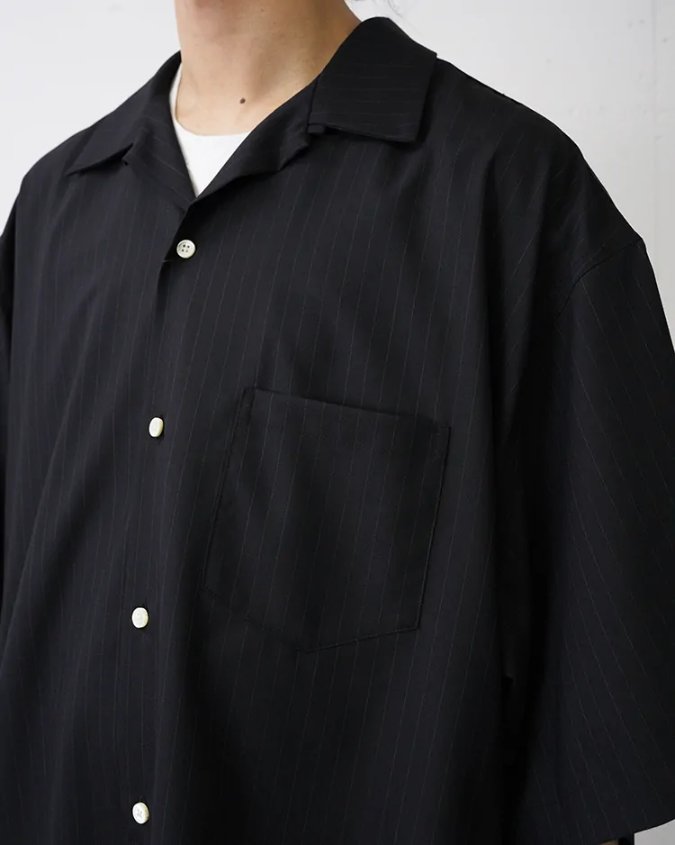 ESSENTIAL コレクションとしてオープンカラーのオーバーシャツ仕様。羽織りとして使っていただくこともインナーとしてジャケットと合わせていただくことも可能。パンツのチョイスでセットアップの全体のシルエットをお好みに変化させられます。素材は定番のウールトロピカル。着丈を新しくしたニューバージョンです。