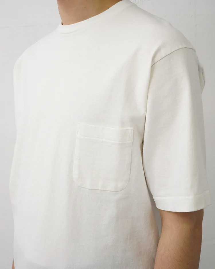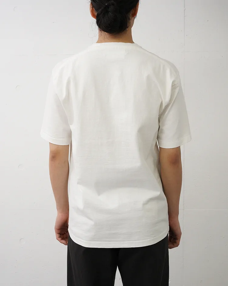 Tシャツは天竺編み※の柔らかくしなやかなカリフォルニアコットンを使用し、あえて太めの空紡糸にすることで、豊かな膨らみを持たせました。