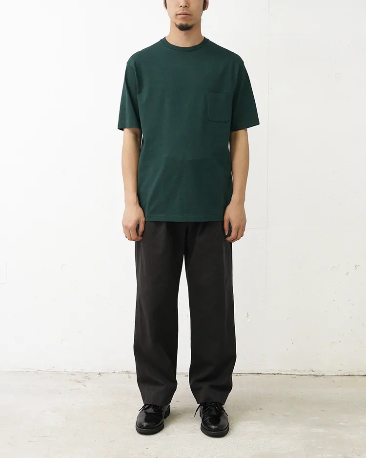 Tシャツは天竺編み※の柔らかくしなやかなカリフォルニアコットンを使用し、あえて太めの空紡糸にすることで、豊かな膨らみを持たせました。
