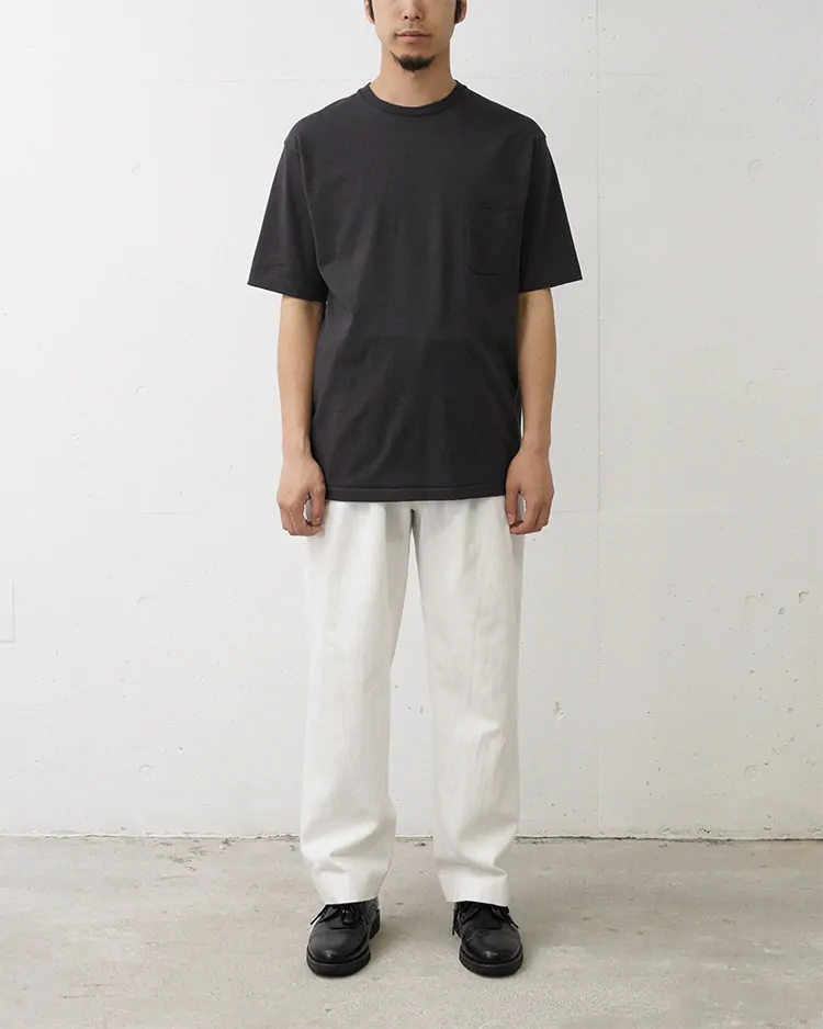 Tシャツは天竺編み※の柔らかくしなやかなカリフォルニアコットンを使用し、あえて太めの空紡糸にすることで、豊かな膨らみを持たせました。