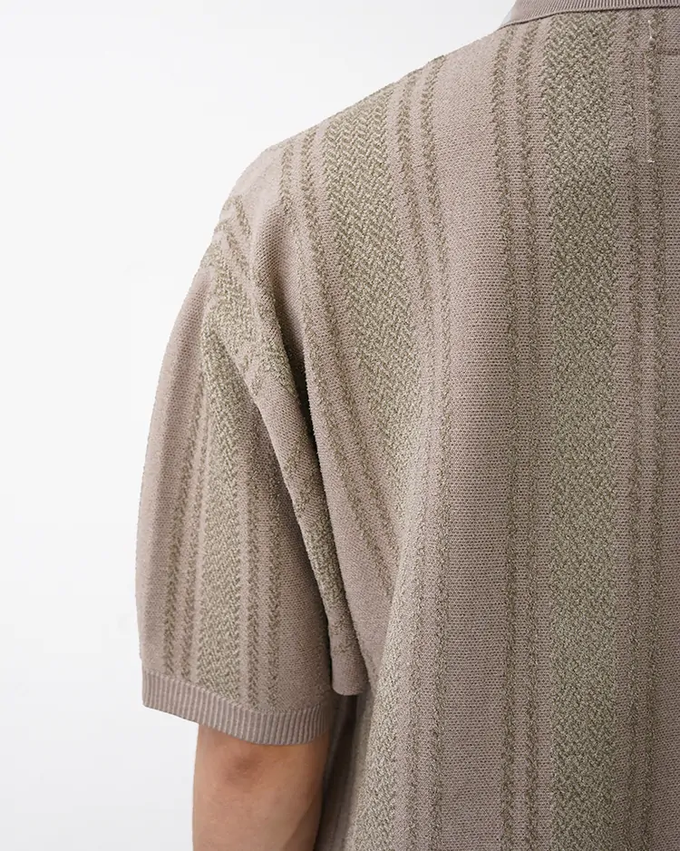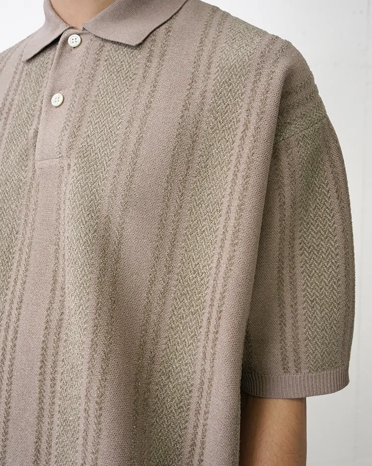・ストライプ柄のニットポロセーター。