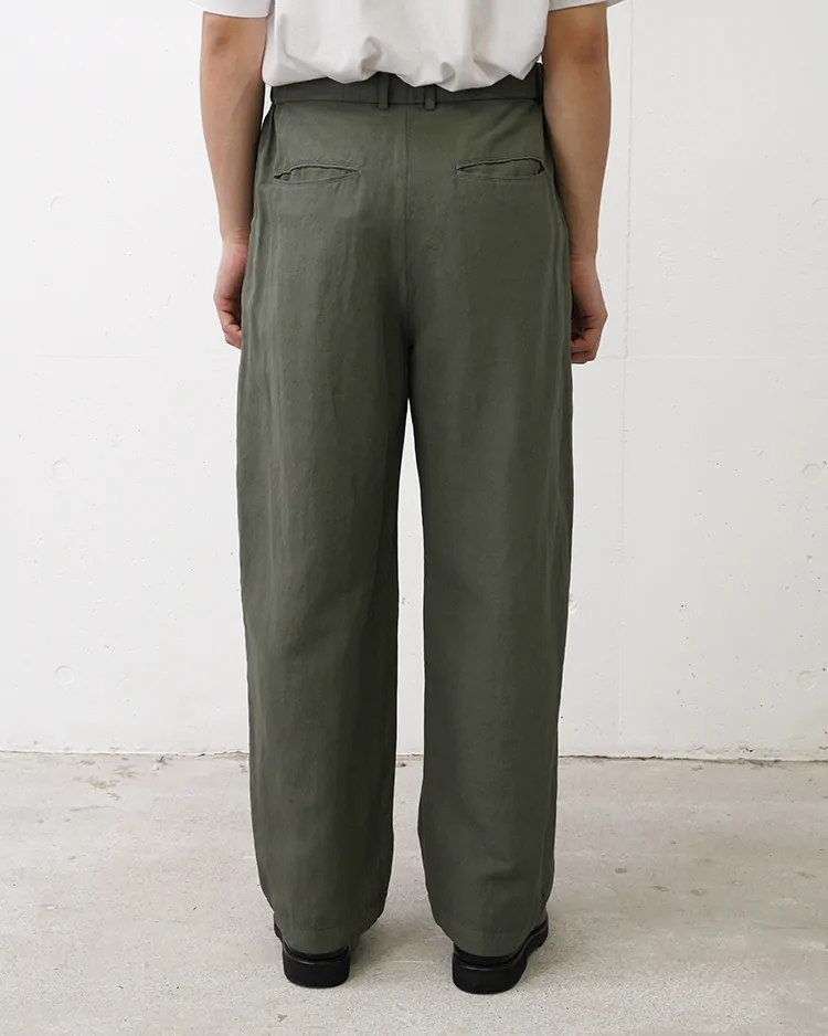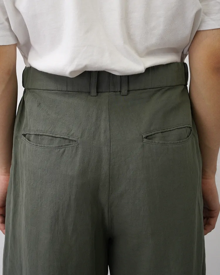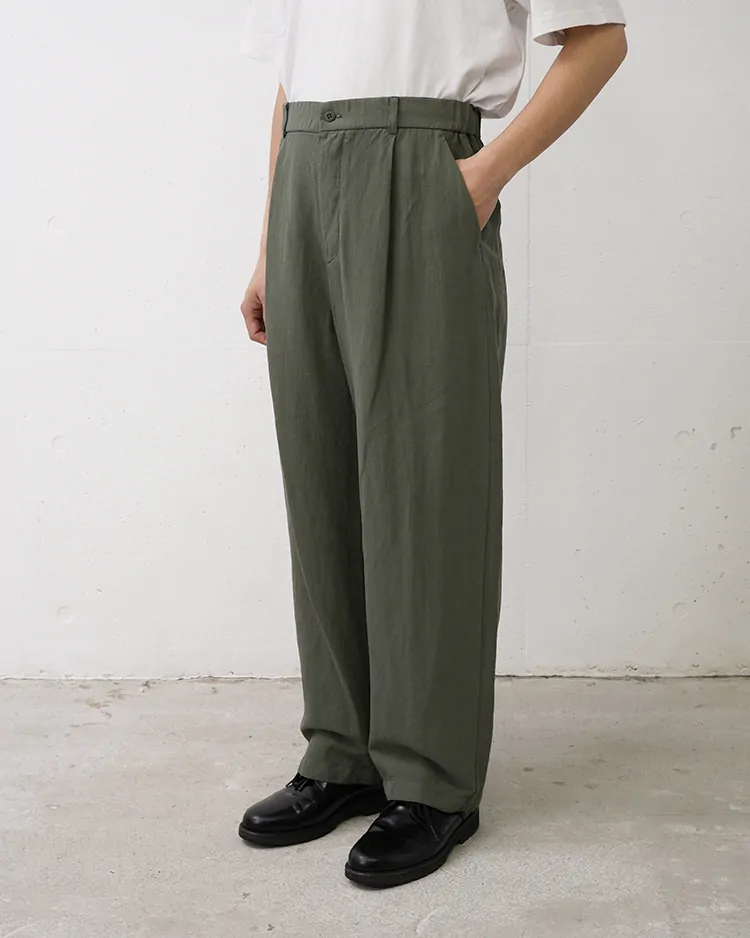 COTTON LINEN VOILE LOOSE PANTS / KHAKI