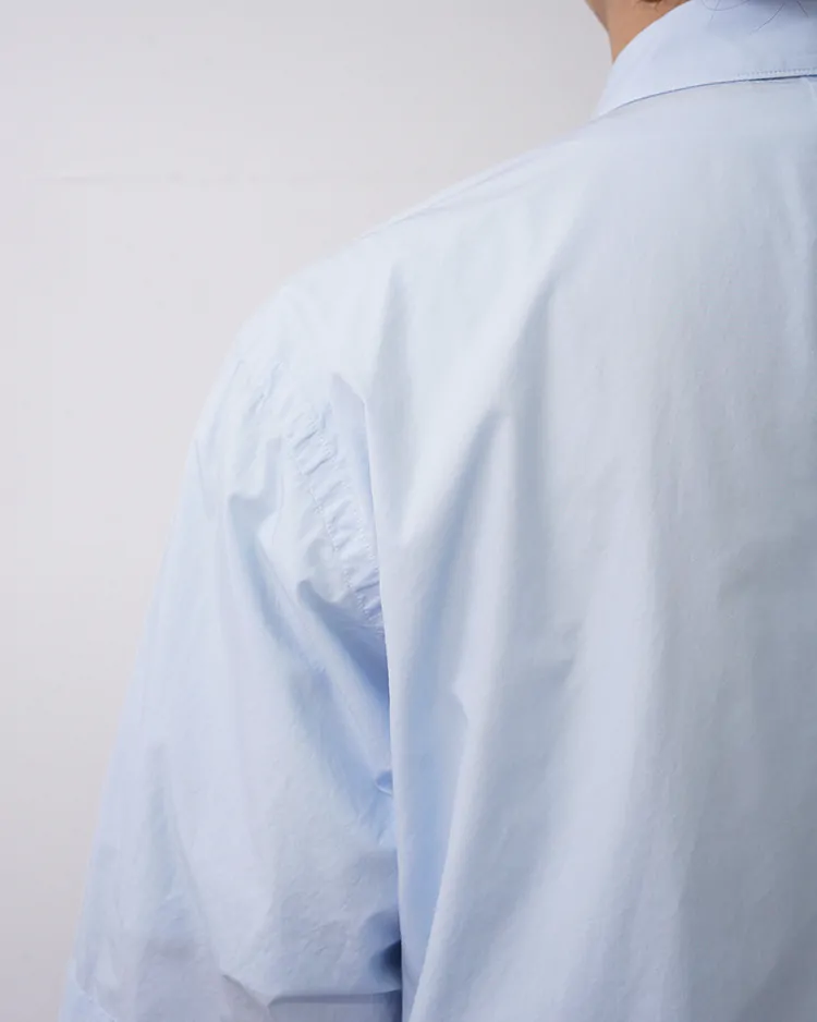 SHRINK COTTON LAWN OVERSIZED HALF SLEEVE SHIRT / SAX