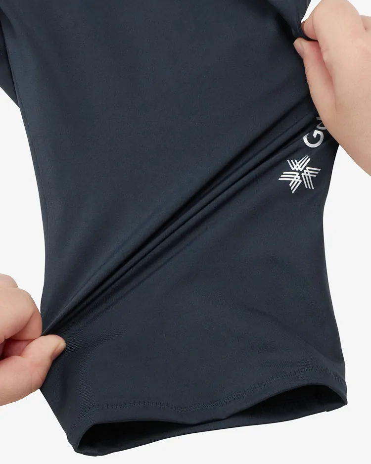 シルエットは、日本人の平均的な体型をもとにフィット感を追求。ウエスト部分は、肌に優しくフィットし、汗処理もしやすいメッシュゴムに。メッシュゴムのズレにくい特長に加え、ずり落ちを軽減するためのドローコードを配置しています。UVガード(UPF30-50+、紫外線カット率90%以上 ※30%伸長時のデータ)機能付き。ランニング、トレッキング、ゴルフなどのスポーツシーンで幅広く活躍します。