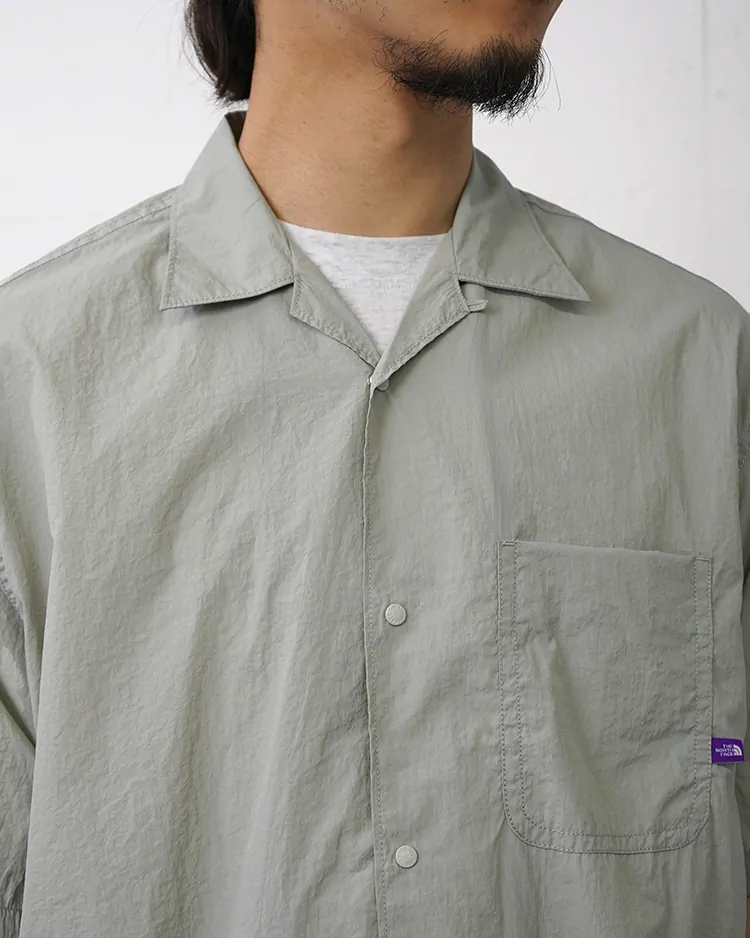 ・程よい光沢感のあるワッシャーナイロンタフタを使用したオープンカラーシャツ