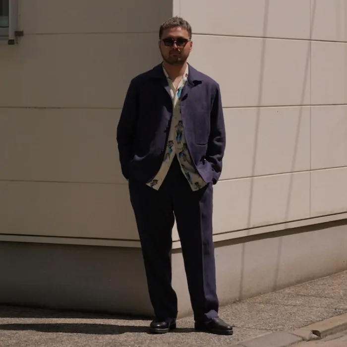 PEOPLEAT THE STORE PEOPLE Dice&Dice staff AKASHI(176cm,80kg) DATE 2022.07.07 ITEMS ORRS Sw.HERRINGBONE SUIT(LINEN)